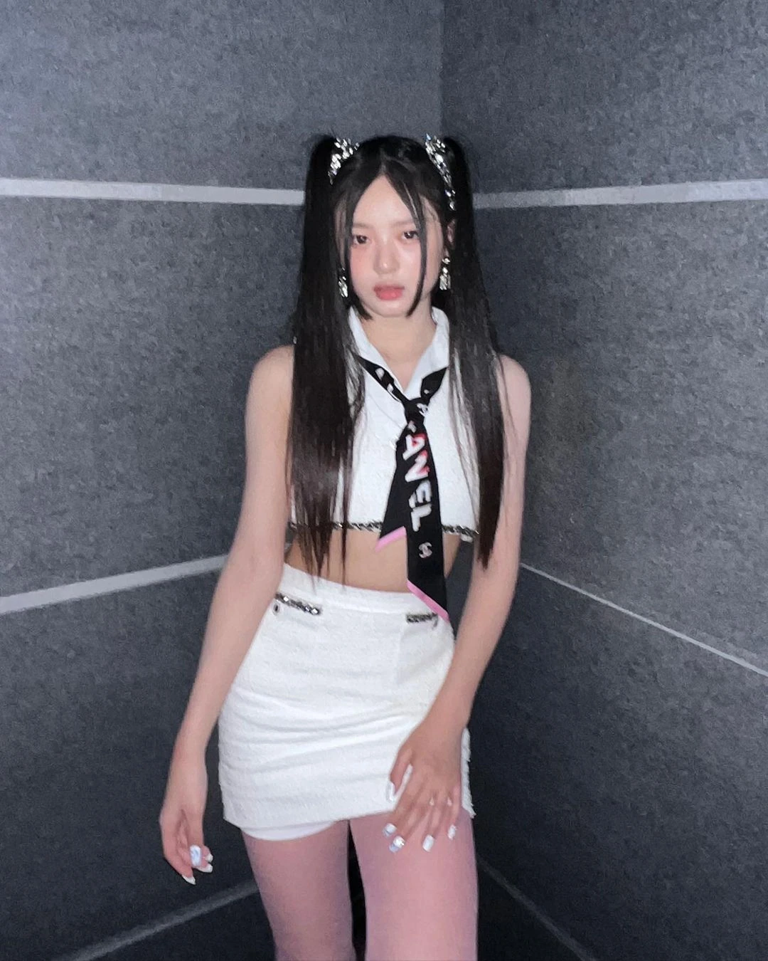 2022년 열린 샤넬 ‘샤넬 Nº1 DE CHANEL GARDEN 포토월’에서의 양갈래 샤넬 착장이 반응이 좋았다.