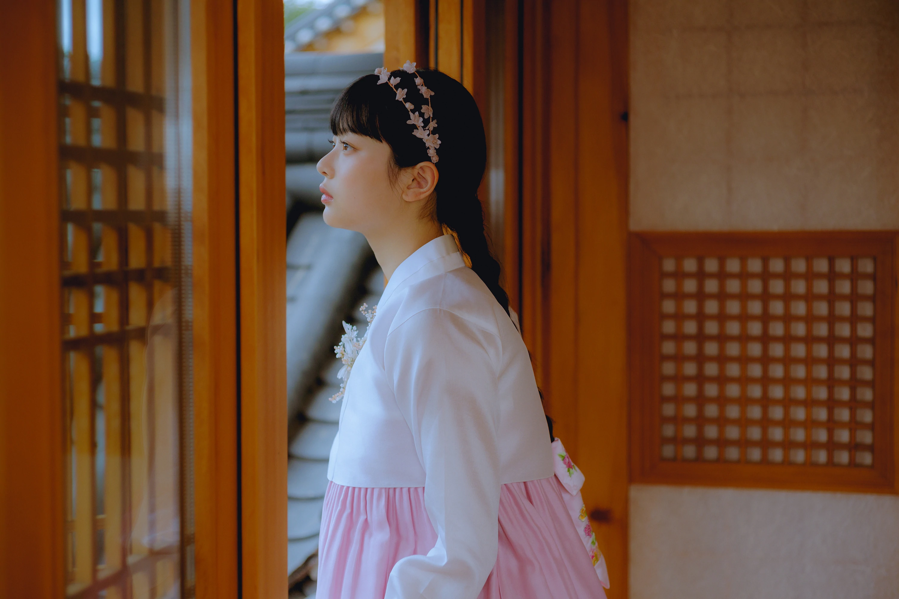 한복이 정말 잘 어울리며, 큰 눈과 동글한 얼굴형 때문에 안경을 쓴 모습 또한 반응이 좋다.
