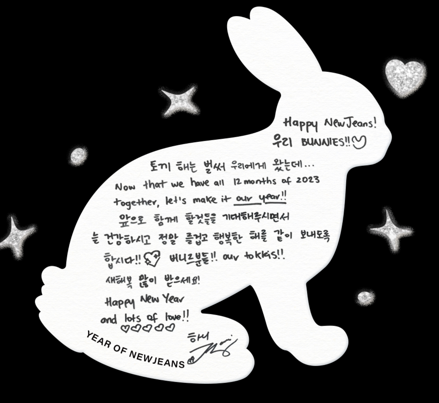 (2023년 1월 1일, 새해 인삿말을 통해 한글 글씨 또한 잘 쓴다는 것을 알 수 있다.)