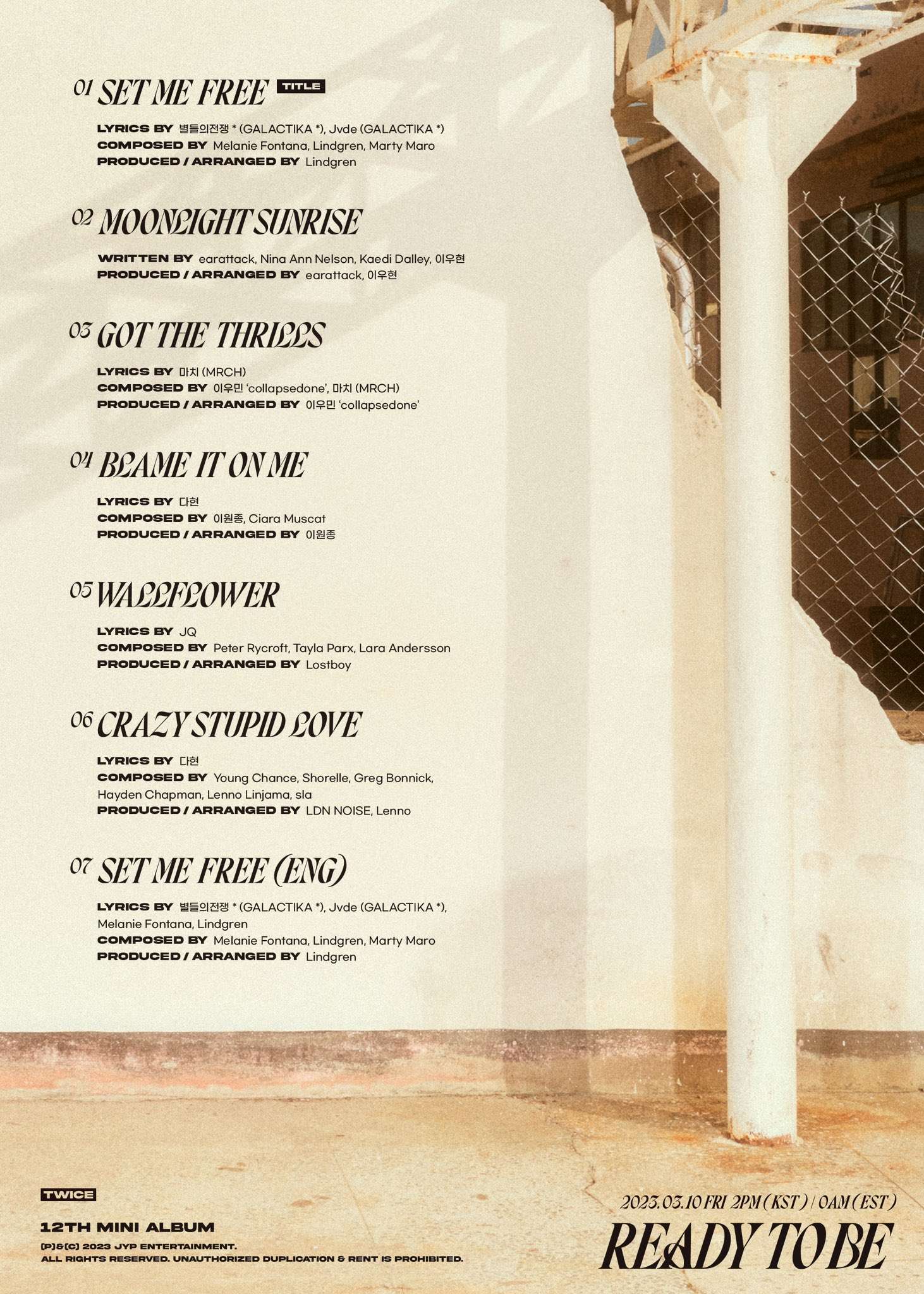 트와이스의 '셋 미 프리'의 뮤직비디오,앨범은 3월 10일 오후 2시(EST)에 공개, 발매된다.