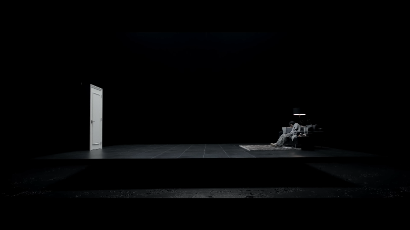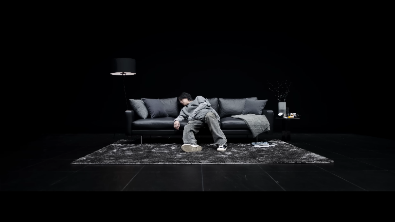 문 밖으로 나가고자 하는 슈가가 뒤를 돌자, 쇼파에 누워 있는 본인과 마주했고 이 모든 상황을 지켜보는 듯한 또 다른 자아가 등장했다.