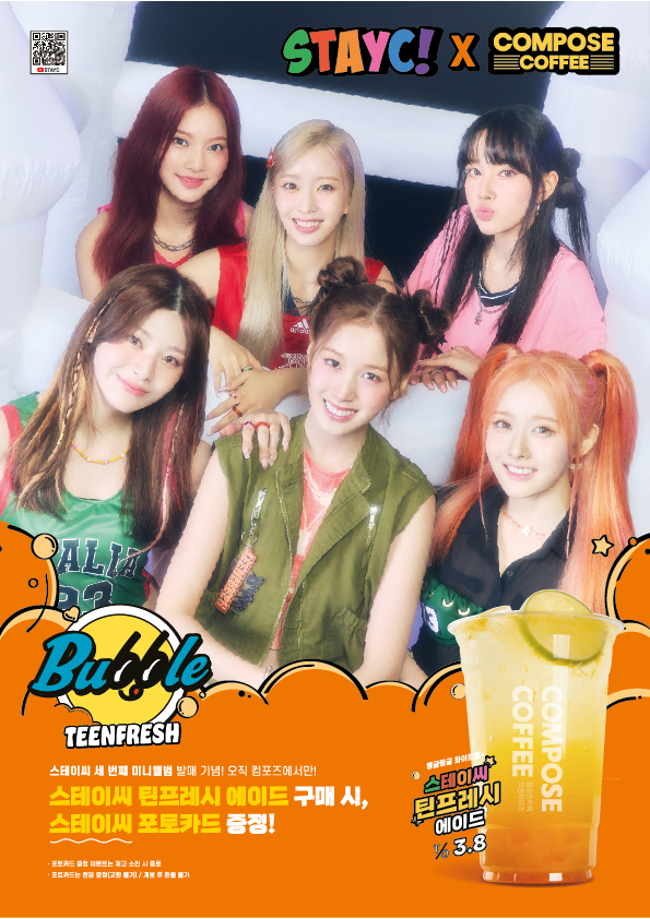 한편, 스테이씨는 카페 브랜드 '컴포즈커피'와 신메뉴 컬래버레이션을 진행하는 등 팬들이 직접 참여하고 즐길 수 있는 다양한 이벤트를 계획하기도 했다.