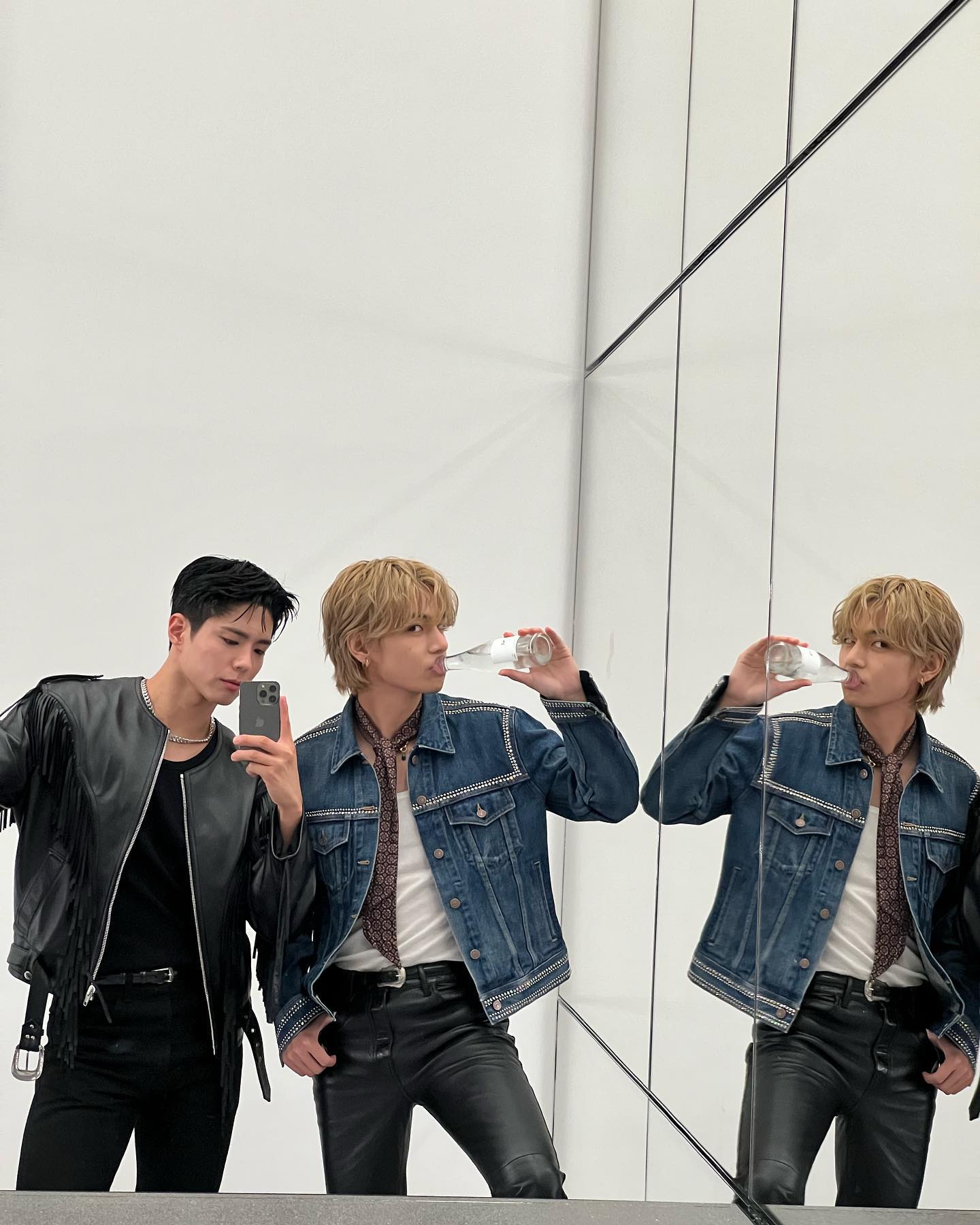셀린느 도쿄 리오프닝 행사 참석한 박보검과 뷔, 우정 셀카 공개