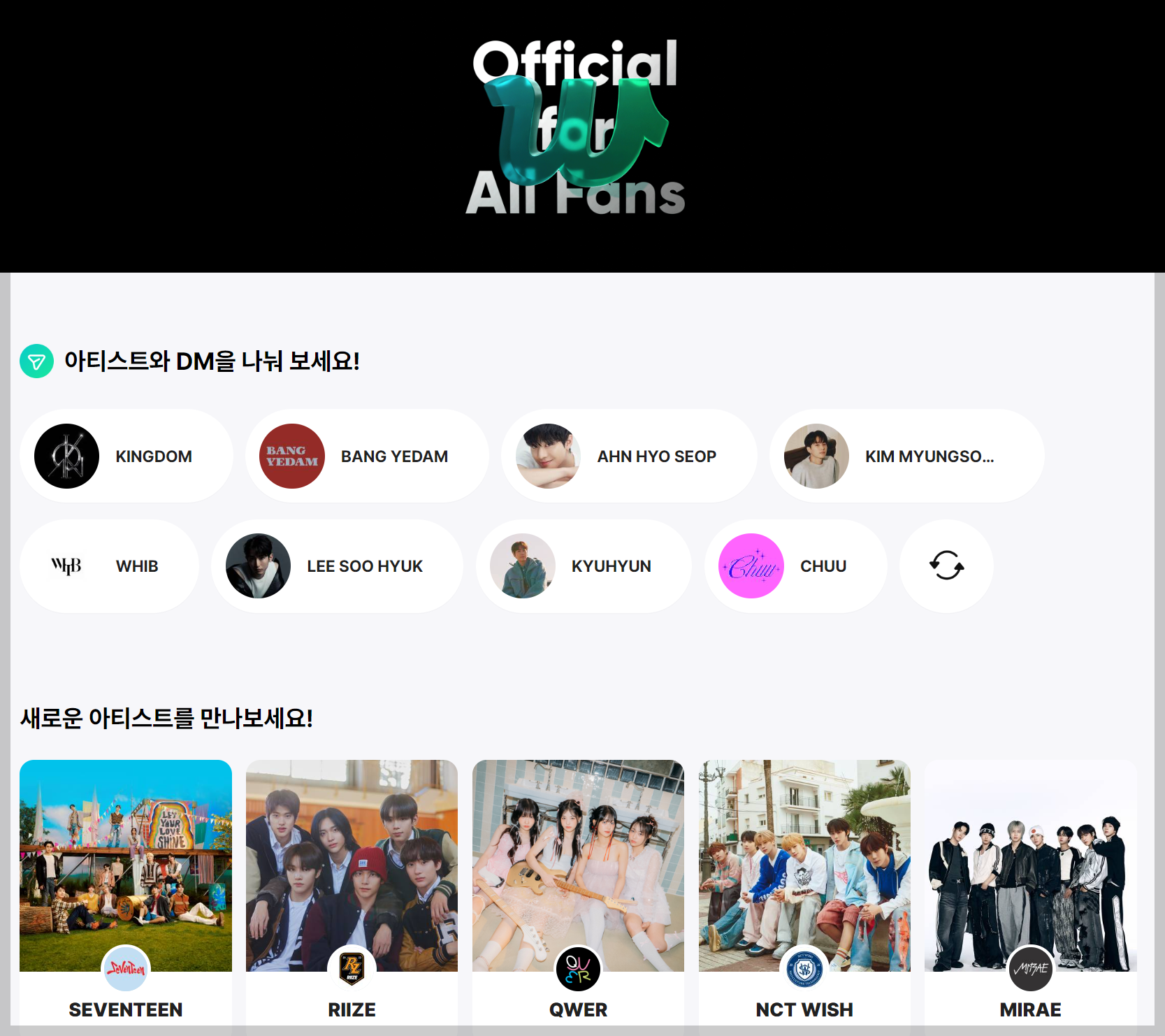 *위버스에는 하이브 레이블즈 소속 아티스트 이외에도 타 사 아티스트들 도 적극적으로 입점 중이다.